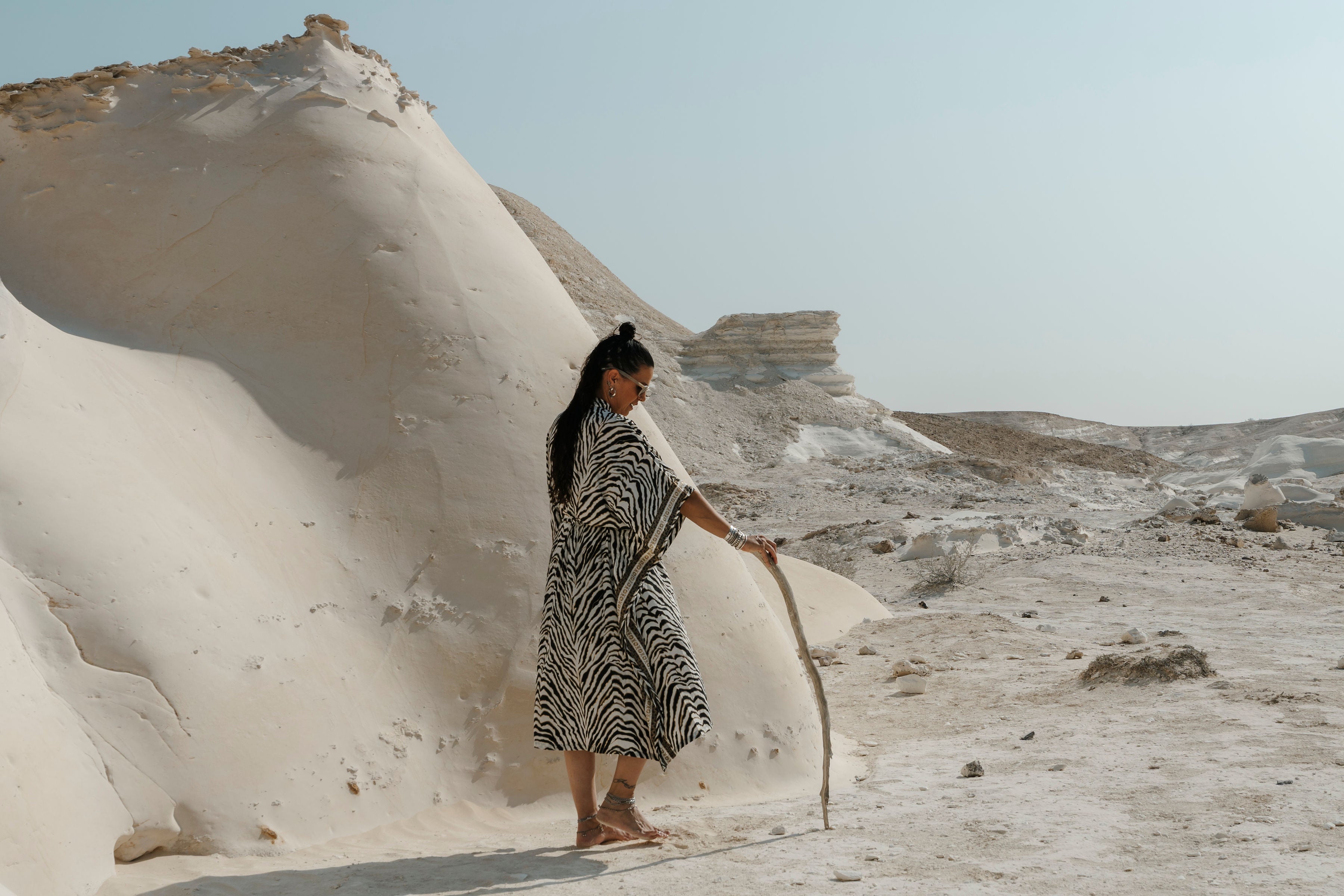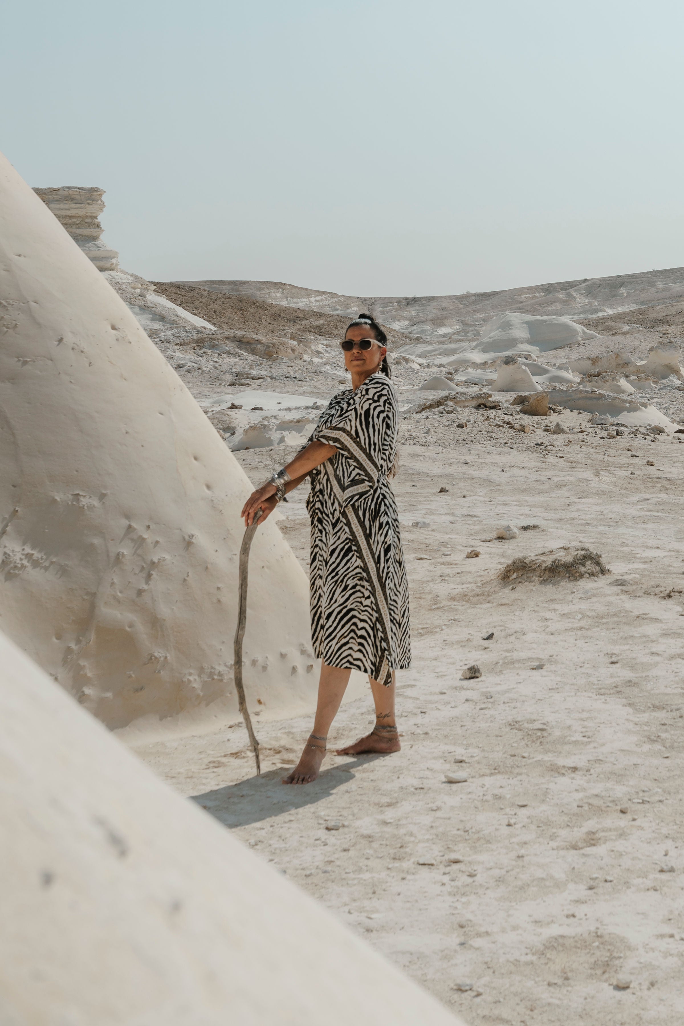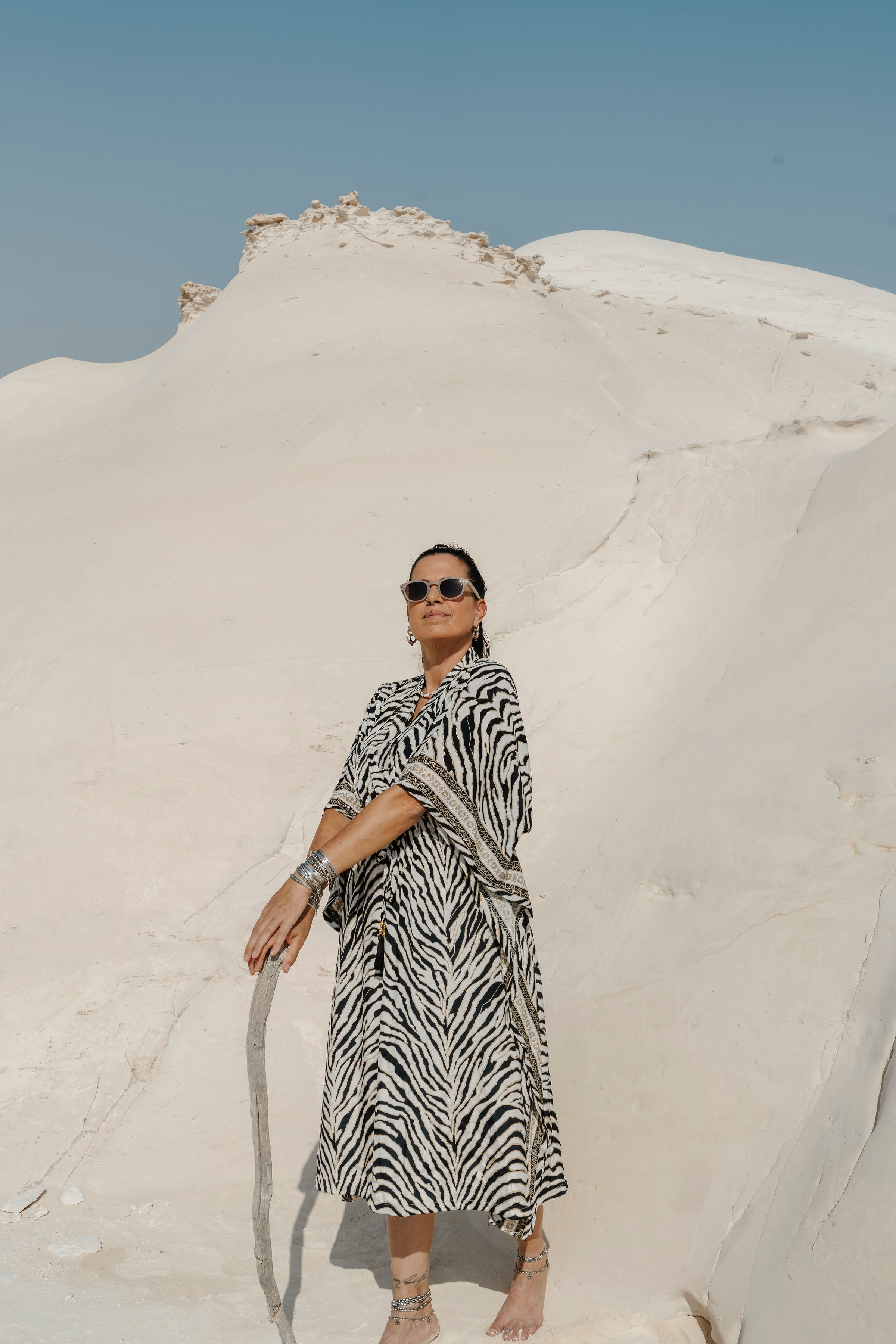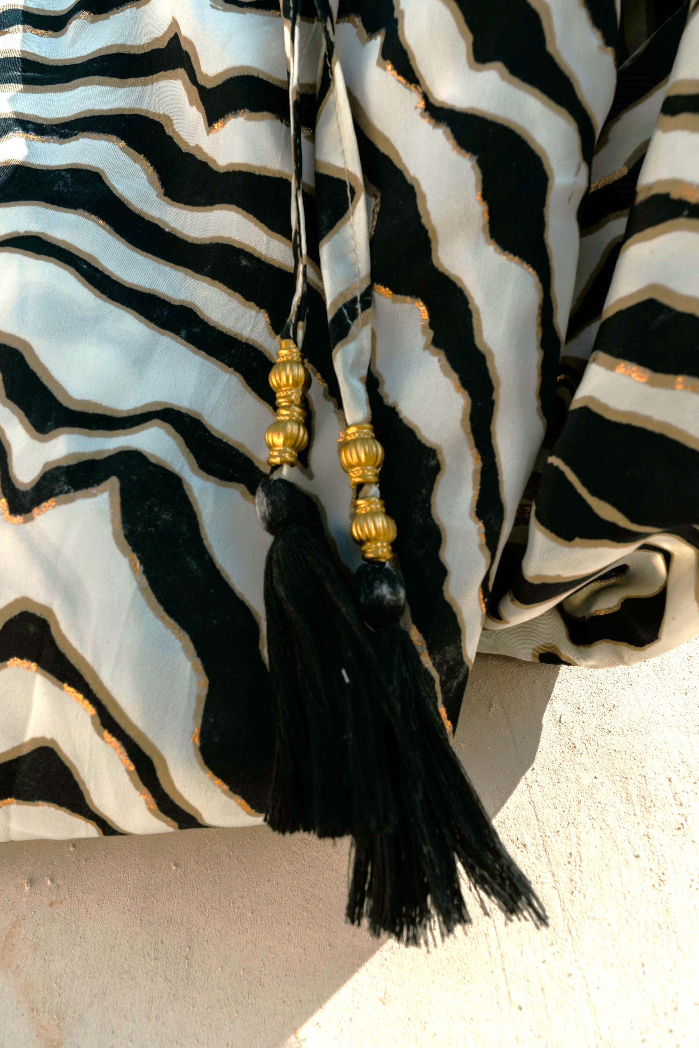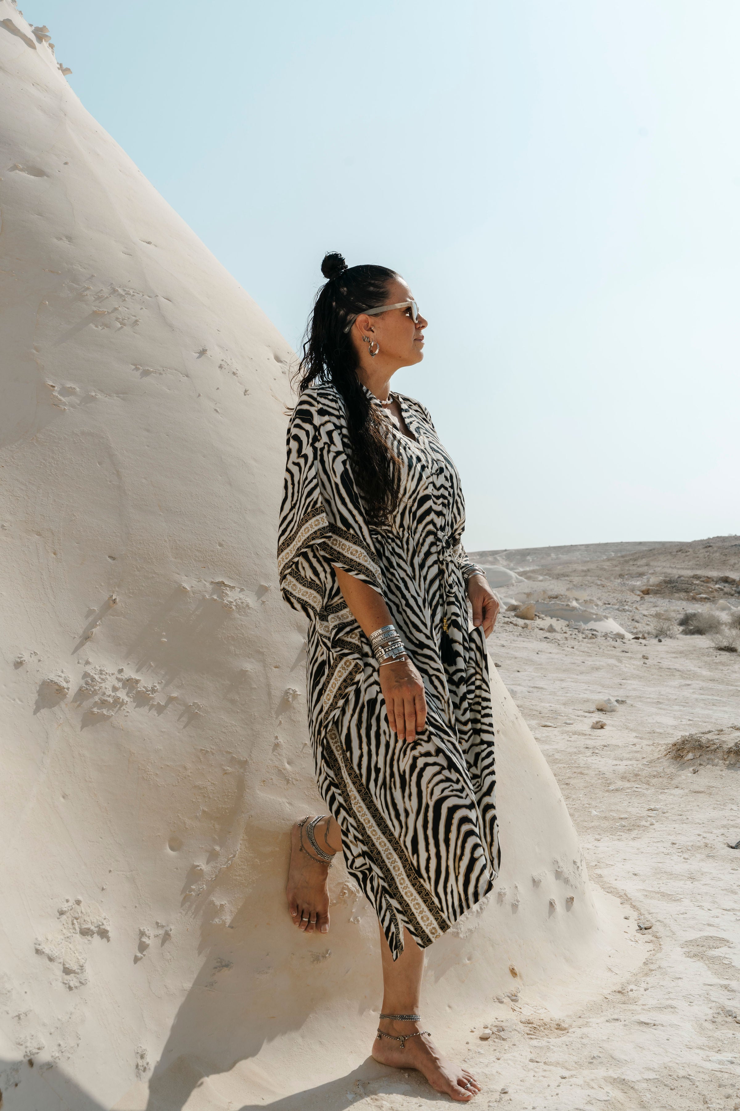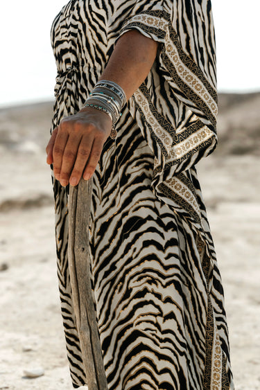 שמלת טוניקה/גלבייה בהדפס זברה שחור ובז'