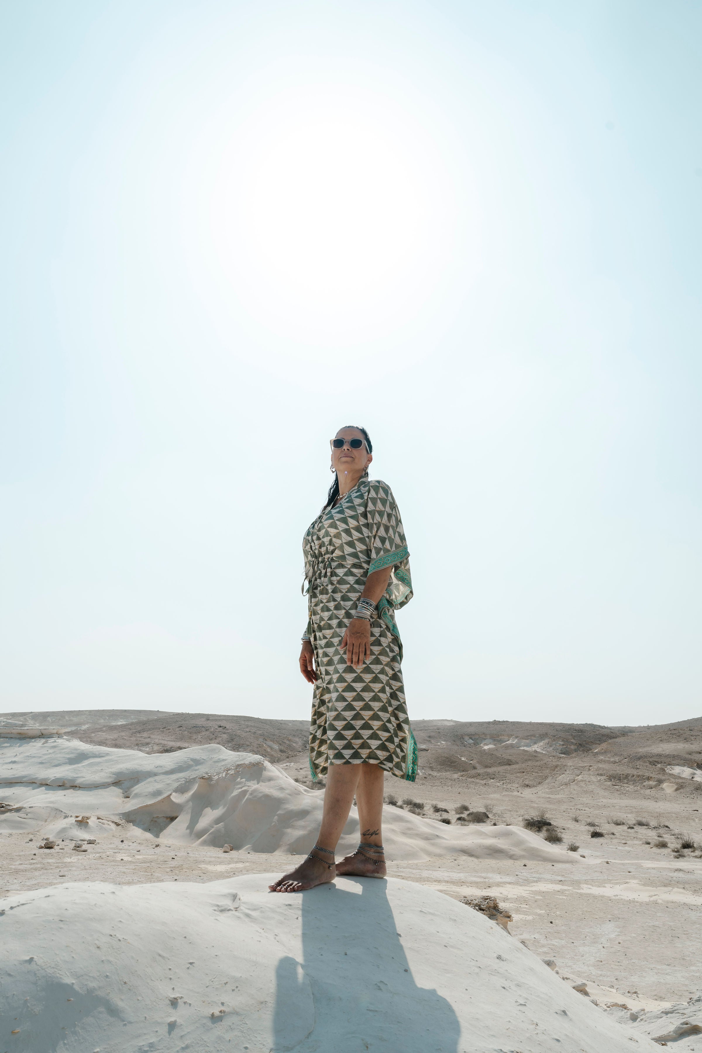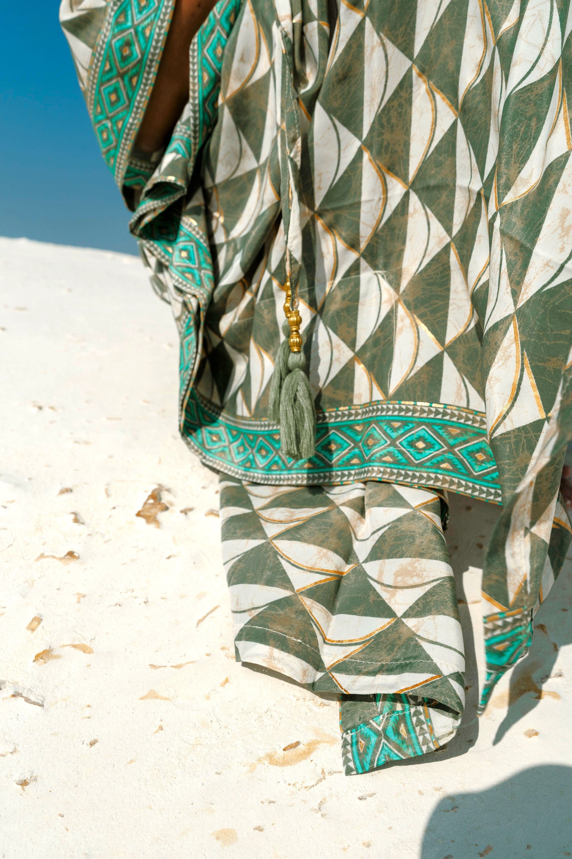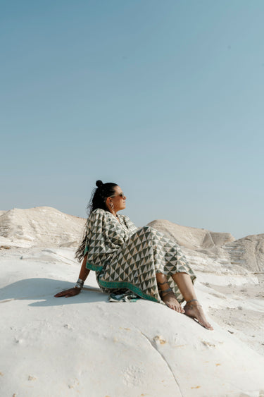 שמלת טוניקה/גלבייה בהדפס משולשים ירוק
