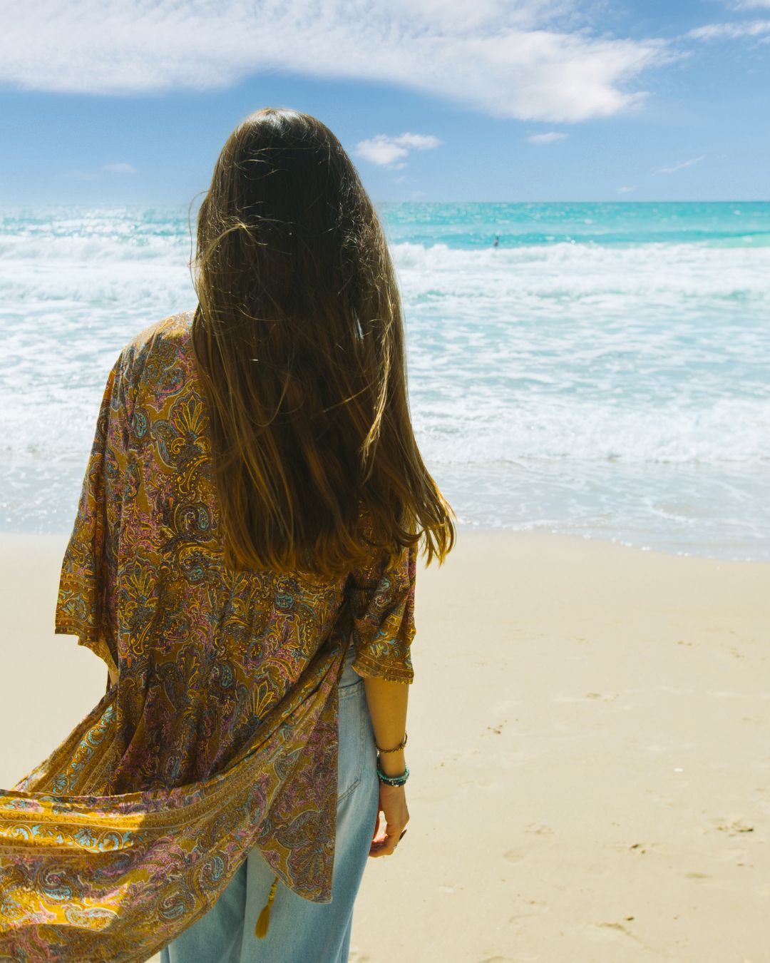 כל הבדים מגיעים מהודו ונבחרים בקפידה, אני דואגת לנסוע למפעלים ולשווקים עצמם כדי לוודא את איכות, העמידות והתחושה של הבד על הגוף.