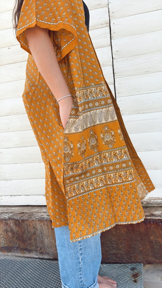 קימונו ארוך - ONE OF A KIND - קימונו מריגולד - צהוב חרדל